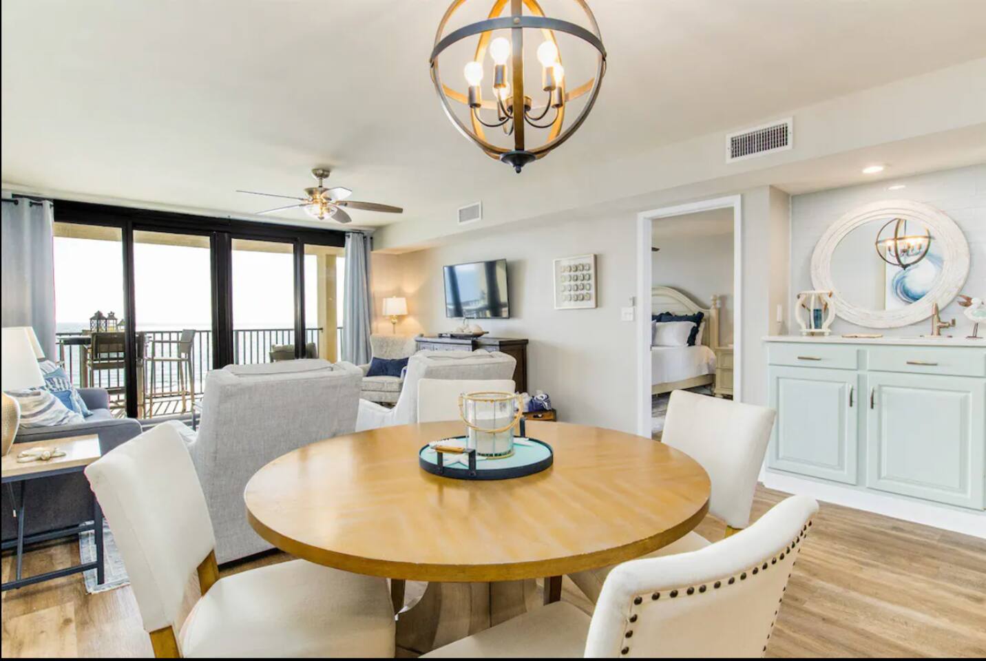 Welcome to Wind Drift 503 — a beach lover’s dream! 🏖️ From the moment you walk in, you’ll be greeted with stunning Gulf views and the calming sound of waves 🌊 thanks to expansive sliding glass doors in the living room and primary suite. This spacious 2BR/2BA condo sleeps up to 8 guests — perfect for families, couples, or a friends’ getaway. The primary suite features a 🛏️ king bed, ensuite bath, Smart TV, and balcony access. The guest bedroom includes a 🛏️ queen bed, a 🛏️ full bed, and an ensuite bathroom accessible from both the bedroom and hallway. Unwind in the open-concept living area, featuring a comfy sleeper sofa 🛋️ with memory foam topper and a Smart TV 📺. Step outside to the oversized 218 sq ft balcony and enjoy dolphin spotting 🐬, al fresco meals 🍽️, or a good book 📚 from our lending library. The fully equipped kitchen has everything you need, from full-size appliances 🍳 to a Keurig ☕ and drip coffee maker for your morning brew. ✨ Amenities include: 2BR/2BA | 1,100 sq ft Private balcony with 180° Gulf views 🌅 2 outdoor pools 🏊 (Beachside & Bayside) Tennis 🎾 and pickleball 🏓 courts In-unit washer/dryer 🧺 Free WiFi 📶 Smart TVs in every room (with cable, Netflix, Disney+ via your login) ❄️ Snowbirds welcome! Message us for special rates Nov 1 – Mar 15.